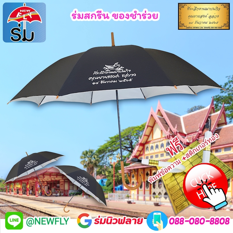 ร่ม ของชำร่วยงานศพ ร่มงานศพ ราคาส่ง สั่งซื้อร่ม รับฟรี สติกเกอร์ทอง ร้านร่มนิวฟลาย เปิดบริการ ทุกวัน ถึง 2 ทุ่ม รับสินค้าได้เลย จัดส่งได้ทั่วประเทศ