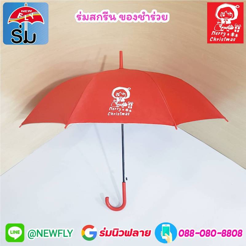 ร่ม MERRY X'MAS ของชำร่วย งาน คริสต์มาส สั่งซื้อร่ม สกรีน ฟรีค่าบล็อค ไม่มีขั้นต่ำ ร้านร่มนิวฟลาย บริการออกแบบ ผลิตด่วนได้ ตามต้องการ