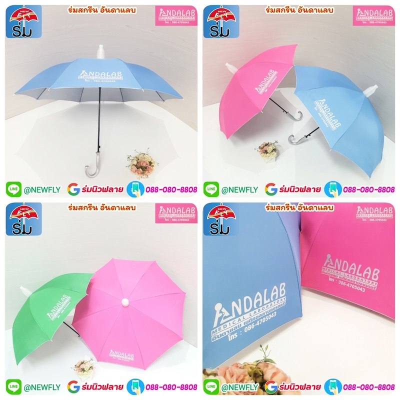 * ร่มนิวฟลาย สามารถนำไปสกรีน ข้อความ โลโก้บริษัทของท่าน ตามต้องการ ( ฟรี ไม่มีค่าบล๊อกสกรีน ) ไม่มีขั้นต่ำ สั่งได้เลย * เราเป็นแหล่งค้าส่งร่ม ที่มีสินค้าหลากหลายมากที่สุด ร่มนิวฟลายมีจำหน่าย แล้วทั่วประเทศ