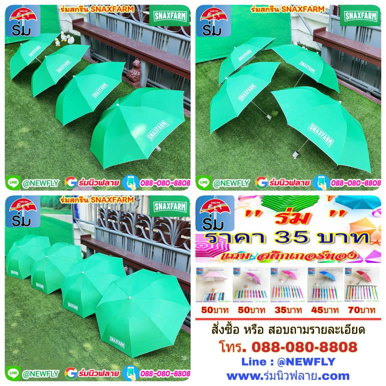ร่ม โรงงานผลิตร่ม ขนม เบรคแตก สั่งผลิตร่ม ร่มพับ สกรีนร่ม SNAXFARM ฟรีค่าบล็อค ไม่มีขั้นต่ำ โรงงานร่มนิวฟลาย รับผลิตร่ม พรีเมี่ยม ทุกชนิด
