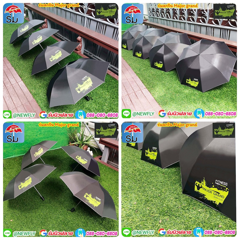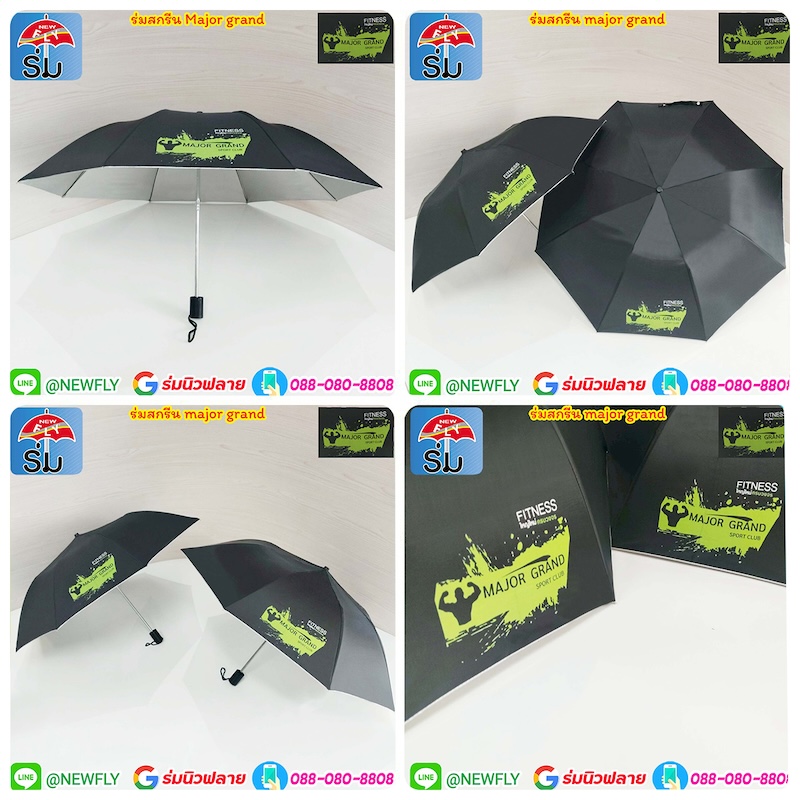 ร่ม โรงงานผลิตร่ม ยิม ออกกำลังกาย สั่งผลิตร่มพับ 2 ตอน สกรีน MAJOR GRAND SPORT ฟรีค่าบล็อค ไม่มีขั้นต่ำ โรงงานร่มนิวฟลาย รับผลิตร่มพรีเมียม