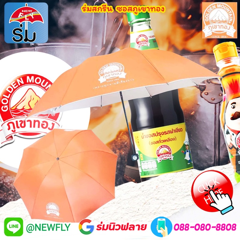 ร่ม โรงงานผลิตร่ม ซอสไทย ปรุงรส สั่งผลิตร่มพับ สกรนร่ม โลโก้ ภูเขาทอง ฟรีค่าบล็อค ไม่มีขั้นต่ำ โรงงานร่มนิวฟลาย รับผลิตร่มพรีเมียม ร่มพับ ร่มยาว