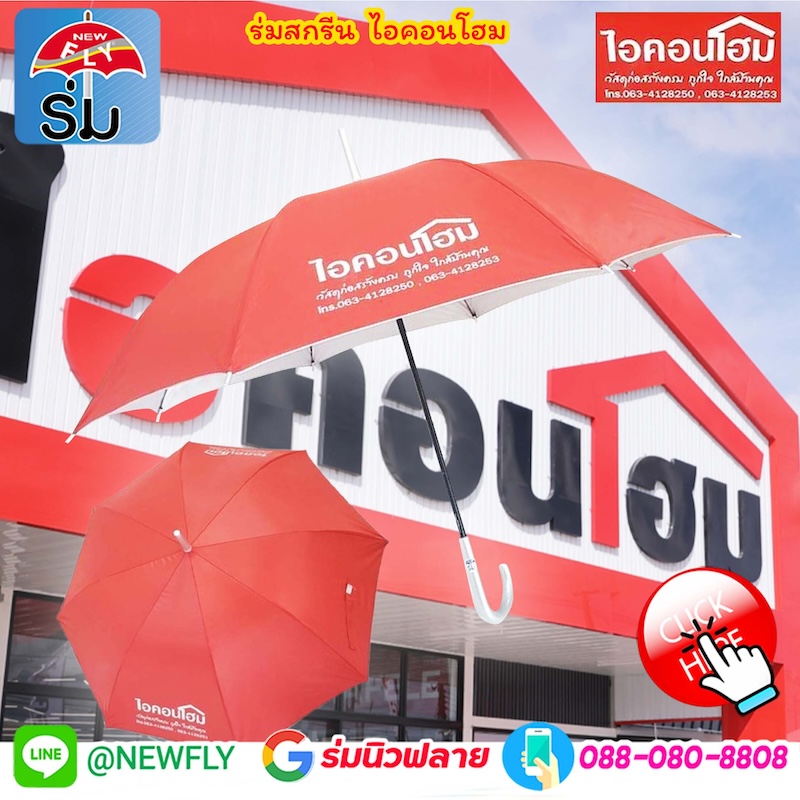 ร่ม โรงงานผลิตร่ม รีโนเวทบ้าน สั่งผลิตร่มเพื่อแจก สกรีนร่ม RENOVATE HOME ฟรีค่าบล็อค ไม่มีขั้นต่ำ โรงงานร่มนิวฟลาย รับผลิตร่มพรีเมียม ทุกชนิด